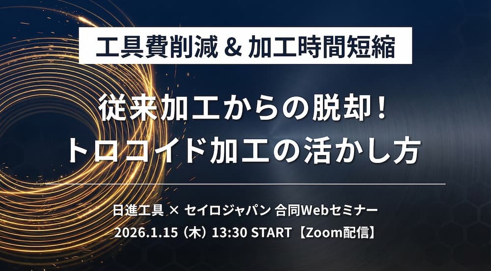 工具メーカー「日進工具」様をお招きし、近年注目される「トロコイド加工」を深掘りします。